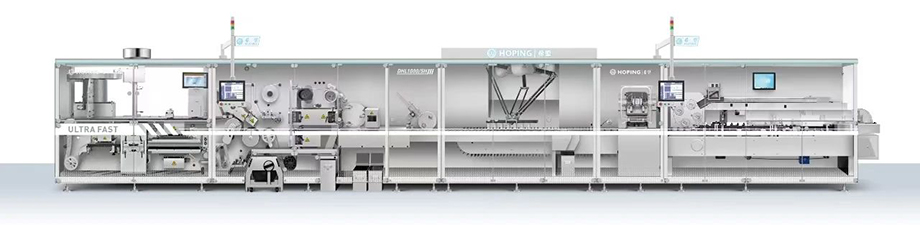 DHL1000/5H Ultra Fast 智能全伺服高速泡罩装盒一体机,超高速1000板/min高效包装体验,全新升级的智能集成系统深度融合智能算法与技术创新,为药品包装提供高效、稳定、低碳、安全的全新解决方案。2/3/4列通用格栅输送系统(无需调节),支持多规格产品快速切换;模具定位及快速更换技术(配方复位记忆功能),更是将换模时间缩短至1小时内,完美适配小批量定制化需求;搭载成型缓冲恒力系统,确保生产全程恒力输出,保障泡罩成型稳定;三段式预热系统,阶梯式递减温度预热,既保障包材受热均匀,也实现了能耗下降约10%;水冷恒温系统采用双循环流量独立控制技术,即使设备长时间高负荷运转,也能保持绝佳稳定性;分区密闭系统通过独特的压差隔离设计,有效避免裸露药品包装安全风险,确保每一板产品都符合高品质标准;可支持独立选配压痕工位、光标对版系统、热量收集系统等可灵活扩展功能,轻松应对复杂工艺场景。开云足球_开云足球(中国)DHL1000/5H Ultra Fast成为您智能包装的核心引擎!