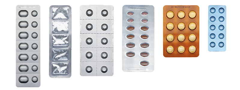 | 卷型包装材料 | PVC/PVDC/PET/PE/ACLAK | 单面涂胶铝箔(PTP)背封材料 |